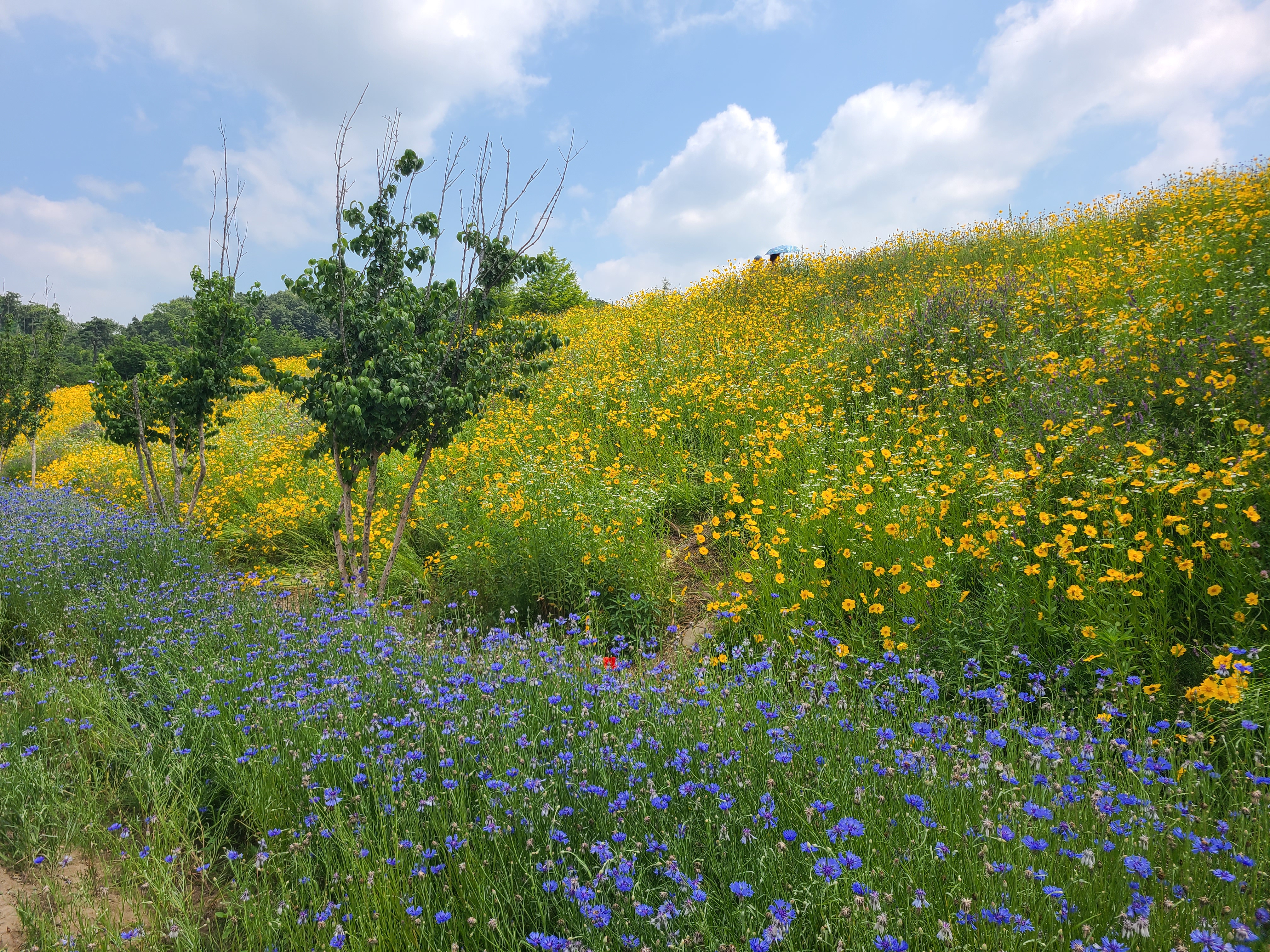 아랫길로 가면 파란색 꽃과 노란색 꽃의 향연이 이루어지고